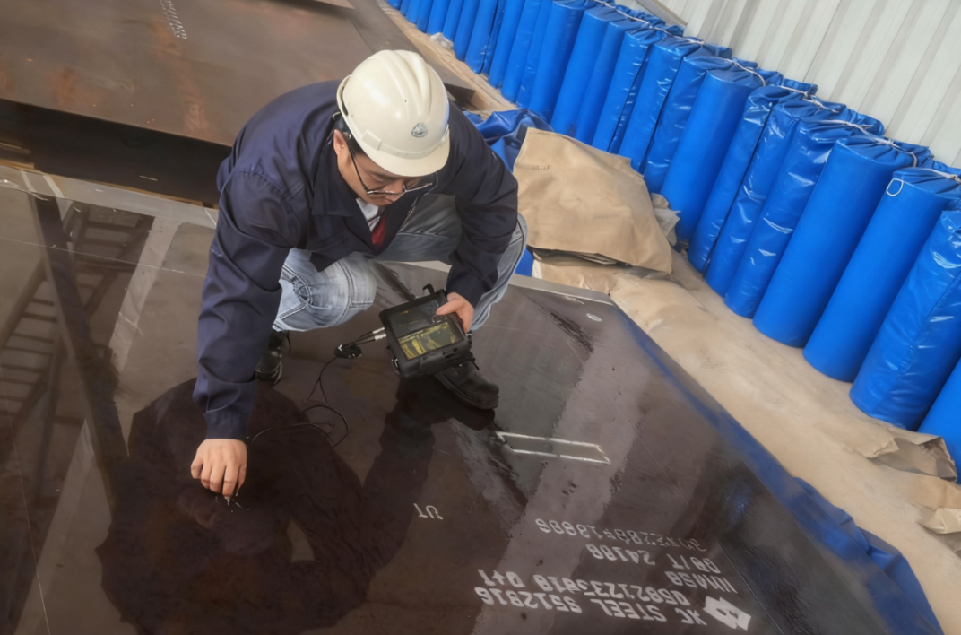 The inspection rigorously adhered to international protocols for wear-resistant steel plate delivery, focusing on three core aspects: dimensional checks, hardness testing, and ultrasonic flaw detection(UT), with all data meticulously cross-referenced against the Mill Test Certificate (MTC).